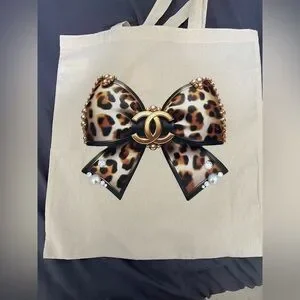 Designer Leopard Print Bow Tote Bag