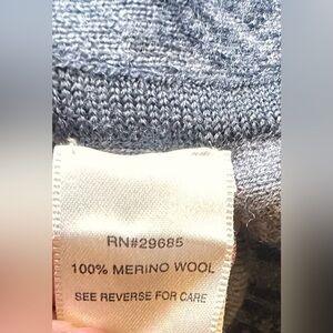 Nice used condition, theee gray buttons and collar . The sweater is shades of gray.