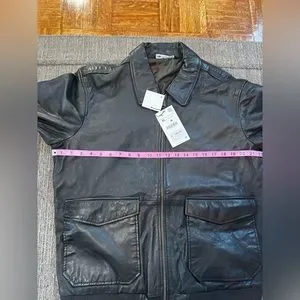 Flash makes jacket look lighter in the photo. Color is darker almost looks black. Let me know if you have any questions.