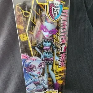 Snag this amazing Monster High Abby Geek Shriek doll from 2014! She's a 1st Generation doll, in her original sealed packaging with all accessories in a blue and purple dress. Abby features include unique glasses and a vibrant design. A must-have for any collector who adores the fab-ghoulish stylings of Monster High!