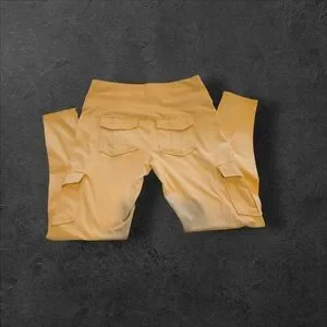 Bright yellow cargo leggings perfect for any workout or casual day. Comfortable and stretchy.