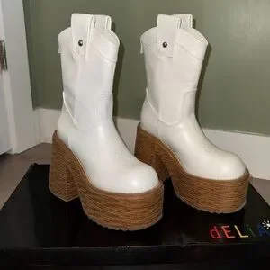 dELiA*s by Dolls Kill Embroidered Platform White Cowboy Boots
