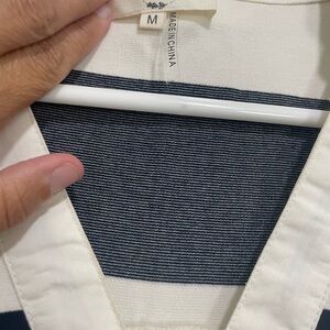 Charming womens Entro brand dress size medium. It’s featuring bold navy and white stripes. Perfect for casual outings or to dress it is. It has pockets. Like new condition