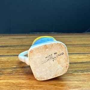 Antique Czech Pottery Miniature Toby Creamer. Czechoslovakian Stamped. This is a beautiful piece with cracks or breaks. Stands a little over 2” tall.