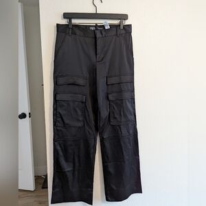 Chic black utility trousers. Features cargo pockets. Ideal for a trendy outfit.