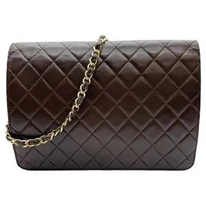 CHANEL Brown Lambskin Classic Single Flap Bag