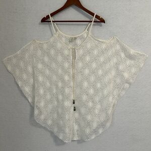 Saint Tropez West Swim Coverup Women M Cream Cold Shoulder Beads Boho Beach