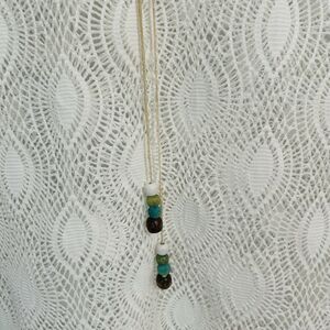 * V neck with cord ties with muted colored beads (white, green, blue, and brown)