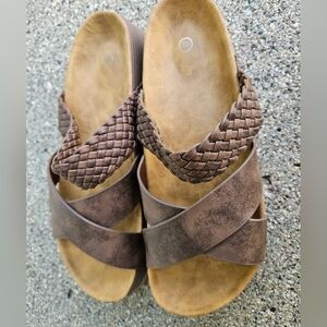 Super comfy brown sandals with a soft foot bed. SHEIN size says 42, which equates to a 10.5/11, but I am typically a 9 & they fit perfect. Worn a couple times & loved, I just have too many shoes!