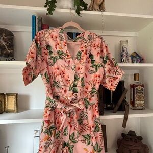 LOFT Leaf Dobby Striped Sugar Peach Shirtdress SZ 8