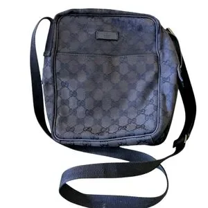 Authentic Gucci Black Messenger Bag with Adjustable Strap and Leather Trim
