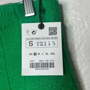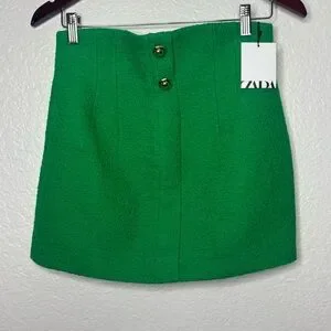 NWT Zara Green High Rise Textured Gold Button Detail Mini Skirt Size Small