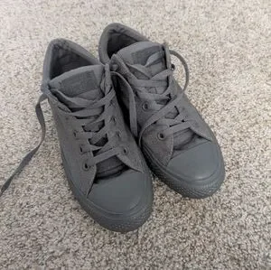 Grey Converse sneakers! Padding on tongue and around the ankle. Monochrome- All grey (Sneakers, soles, Converse tags, laces). Not much wear on soles. Great condition.