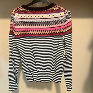 Experience the perfect blend of style and comfort with this GAP sweater, featuring a striking black and white stripes and colorful accent. The fitted silhouette and cozy fabric make it an ideal choice for cooler days. Elevate your casual wardrobe with this versatile top.