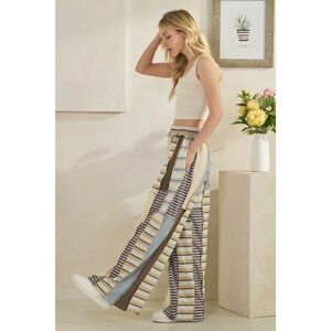 Oli & Hali Cream Blue Multicolor Striped Pants
