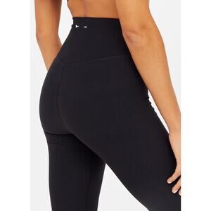 High-waisted 7/8 length flared pants featuring an angled, soft folded waistband for a flattering fit. Made from recycled, peached fabric with a brushed handfeel for all-day comfort. Breathable and moisture-wicking, finished with a printed arrow logo at the back waistband. Made from 75% Recycled Polyamide and 25% Elastane.