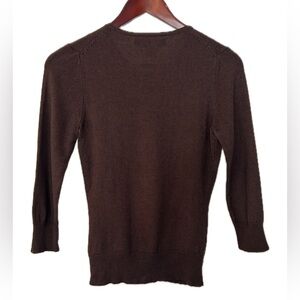 Express design studio, chocolate brown Cardigan. Size small. 3/4 sleeves. Two missing buttons. See pictures for