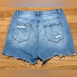 Elevate your casual wardrobe with these stylish distressed jean shorts. Perfect for everyday wear, these blue shorts offer a trendy look. 693