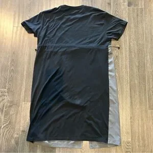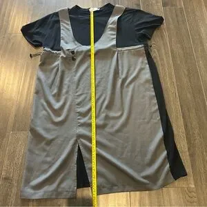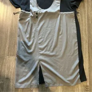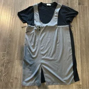 Chic Gray Dress with Lace Detail and Flowy Skirt