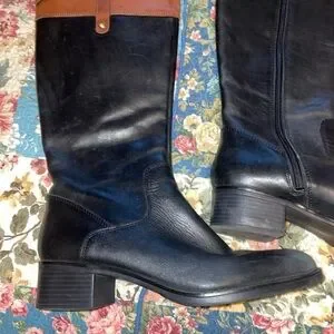 Franco Sarto Black and Brown Heeled Boots 9 women’s med width