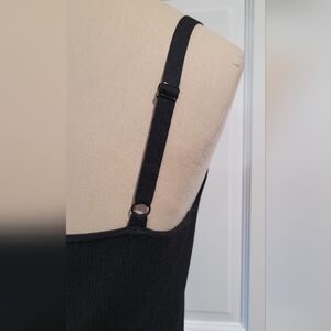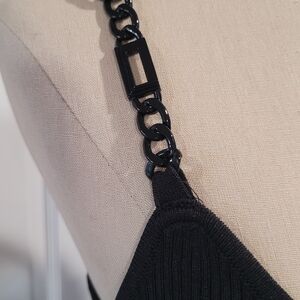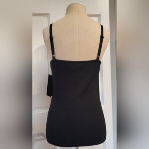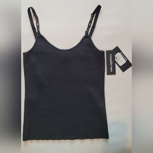 NWT, knit camisole in black with adjustable, elegant, metal straps. Ideal for layering or solo wear. Signature Karl Lagerfeld design. It runs true to size.