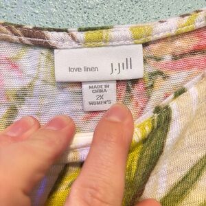J. Jill Relaxed Tropical Print Orange Pink Linen Sleeveless Tank Top Size 2X