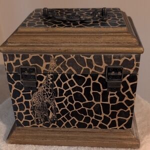 Chic box with giraffe motif. Black and gold pattern. Ideal for decor or storage.