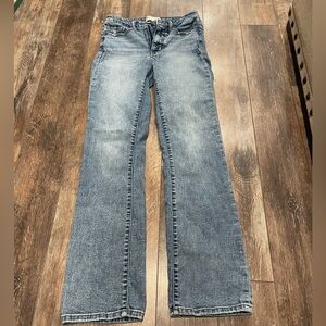 Experience the timeless appeal of Parker's blue straight leg jeans, crafted for a classic and versatile look. The denim showcases a rich blue hue with a subtle worn-in texture, perfect for everyday wear. These jeans offer a comfortable fit and a stylish silhouette, making them a staple in any wardrobe.