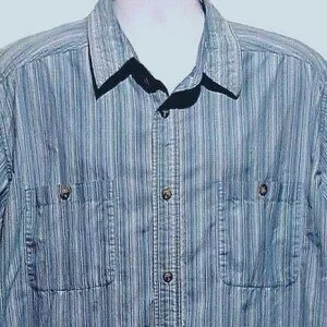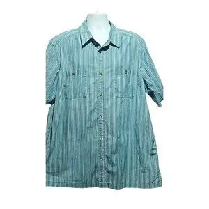 KINGSIZE Brand Mens 2XL Short Sleeve Shirt Button Front Blue Stripe