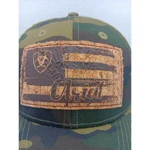 Ariat Flag Patch Baseball Hat Cap Green Camo Mesh Back Snap Back Cork Patch