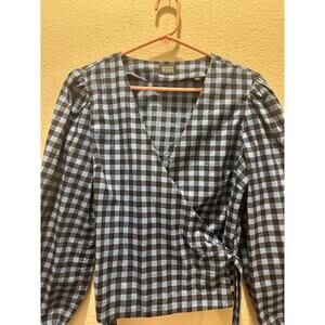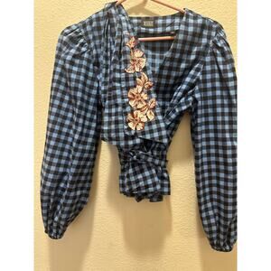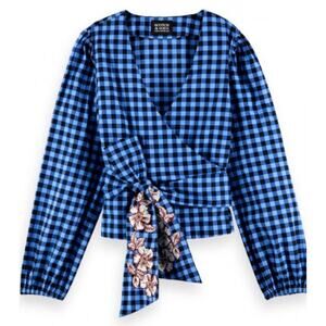This is a gorgeous Scotch & Soda wrap top made from organic cotton. The beautiful blue color and delicate embroidery make it a standout piece. It’s in excellent condition and ready to add a touch of elegance to your wardrobe. Perfect for dressing up or down, this top is sure to become a favorite!