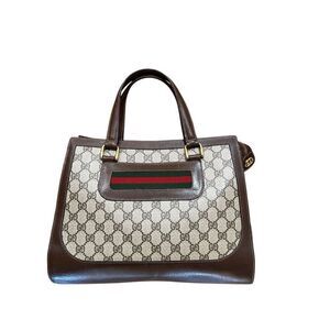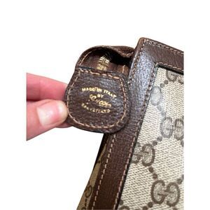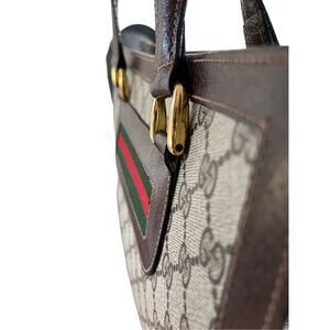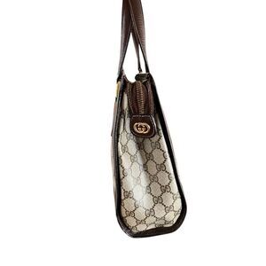 Vintage GUCCI Sherry Tote Wrist Handle Bag Purse GG Logo Brown Leather Authentic