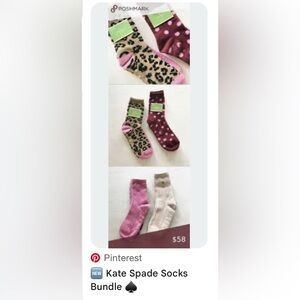 NWT Kate Spade 4 pack Leopard and Pink Socks with Spade Grips - One Size 4-10