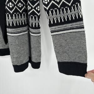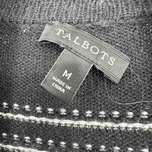Talbots Sweater Womens Medium Black White Cardigan Shawl Collar Fair Isle Knit