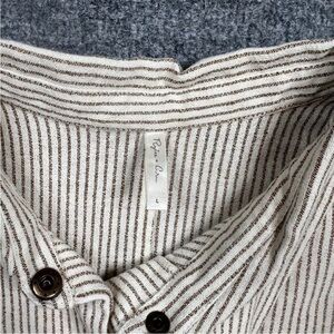 Rylee + Cru Jumpsuit Womens L Multi Linen Blend Stripe Snap Closures Long Sleeve