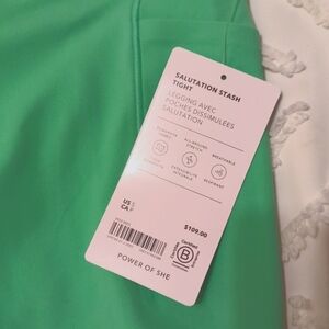 Super soft high waisted leggings. Fun bright green =) Pocket on each side. Size small. New with tags.