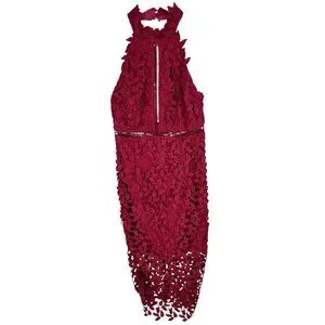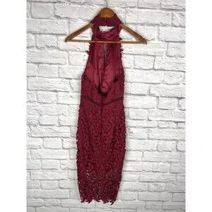 BARDOT Women's Wine Lace Halter Neck Bodycon Gemma Midi Dress US 6