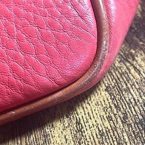 Rare bag! Buttery soft pebble leather with fresh leather smell! Discover the perfect blend of style and functionality with the Dooney & Bourke shoulder bag. Crafted in a striking poppy (pink/red) and tan brown color combination, this bag features a chic leather trim that adds a touch of elegance to its casual silhouette. Ideal for everyday use, it offers a spacious interior to accommodate your essentials while maintaining a fashionable look. Small marks on bottom are pictured. Used only a few times. Dust bag included.