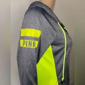 PINK VICTORIA’S SECRET ‘Ultimate’ Dark Grey & Neon Green Sporty Zip-Up Hoodie