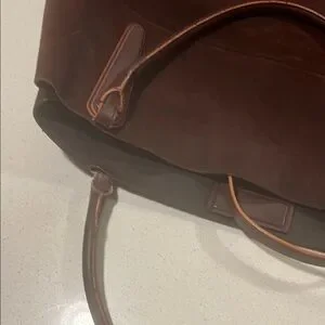 Elegant Coach tote in rich burgundy suede. Features a spacious interior and stylish design. Ideal for everyday use. Great travel bag. Some wear and tear, one magnet has become unstitched, easy to stitch back on, removable crossbody strap, slight fraying, pictured. This was from Coach’s high end line. Beautiful bag! I’ve used it for travel, bought my sister an identical bag to use as her everyday diaper bag, she loved it. Original dust bag included!
