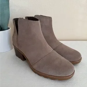 New SOREL Taupe Suede Slip In Heeled Ankle Boots