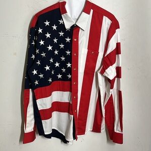 Scully American Flag Embroidered Western Long Sleeve Shirt Sz XXL