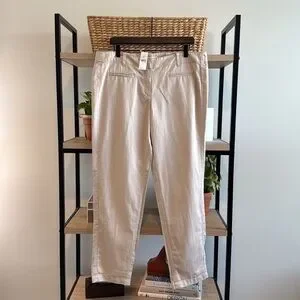 NWT Ann Taylor LOFT Mid-Rise Cotton Linen Blend Straight Leg Woven Trouser Pant, 12