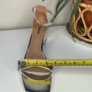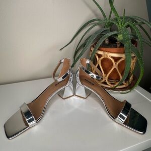 Add a bold, modern touch to your look with these striking silver metallic block heel sandals from Abound. Featuring a sleek mirrored finish, square toe, and supportive ankle strap with adjustable buckle, these heels are perfect for party nights, weddings, or trend-forward street style.