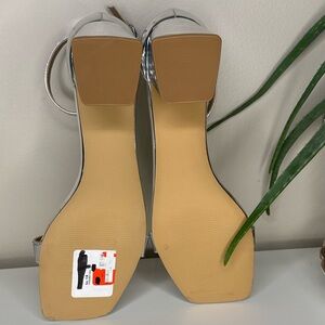 Abound Silver Metallic Block Heel Sandals, Square Toe Ankle Strap 9M