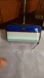 Vibrant Kate Spade wallet with bold stripes. Features blue, orange, and mint green colors.