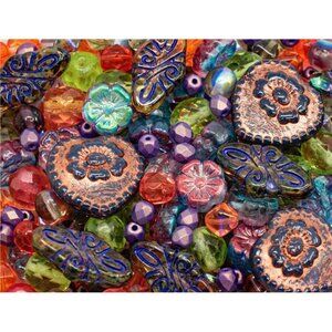 🧿⭕️ COLOR ► Violet Purple Green Copper Crazy Mix with heart and flower beads