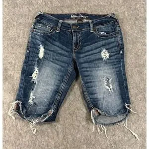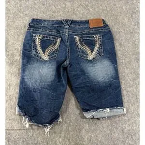Ariya Jeans Women's Cuffed Shorts 9/10 Cut Off Distressed Embroidered Pockets