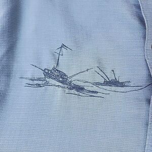 Quicksilver Shirt Men's 2XL Blue Embroidered Pocket Untucked Slit Side Fishing