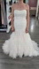 Tulle trumpet gown features a basket woven bodice and a ruffled skirt for maximum dramatic flair. In Ivory.